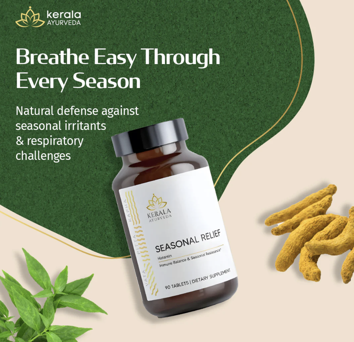 Seasonal Relief delivers a unique combination of Turmeric, Triphala, Andrographis, and Bamboo Rhizome for a powerhouse natural support of your body's defense system, helping the body cope with the seasonal transition. This herbal blend is Seasonal Relief in a bottle, packed with vital nutrients believed to help stimulate and support a natural immune and histamine response for respiratory wellness.